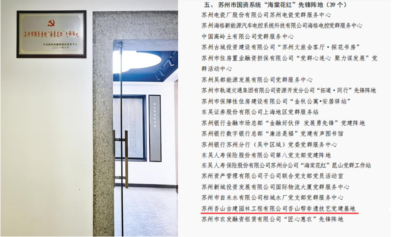 香山古建“香山幫非遺技藝黨建基地”被命名為蘇州市國資系統(tǒng)“海棠花紅”先鋒陣地。
