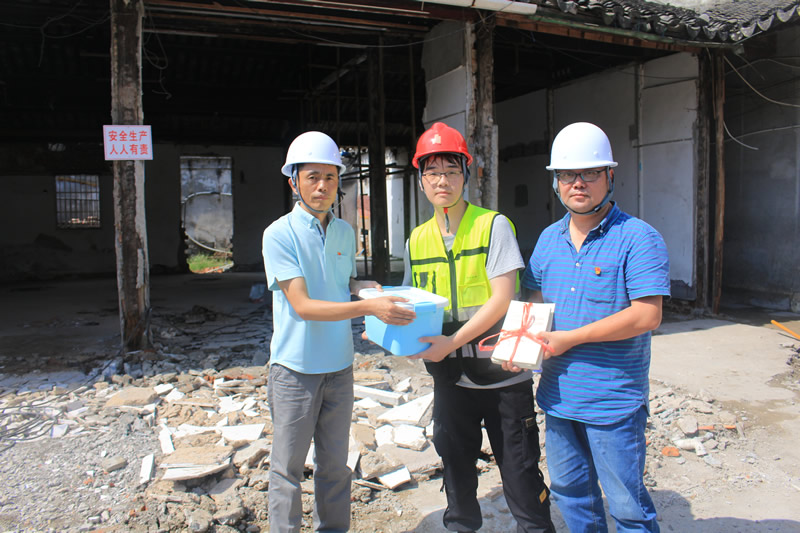 8月4日,園林集團(tuán)工聯(lián)會(huì)副主席戴家棟等一行人前往香山古建承建的蘇州懸橋巷修繕工程項(xiàng)目工地進(jìn)行慰問。慰問組將防暑降溫用品、日常用品、各類安康手冊與黨史學(xué)習(xí)教育指定學(xué)習(xí)資料送到了工友手中,收到慰問品后,工友們喜笑顏開,幸福滿滿。隨后,園林集團(tuán)安委會(huì)與香山黨群對項(xiàng)目現(xiàn)場進(jìn)行了質(zhì)量安全、文明施工等工作的檢查督查,并重點(diǎn)強(qiáng)調(diào)安全生產(chǎn)、飲食衛(wèi)生、疫情防控等重點(diǎn)工作。