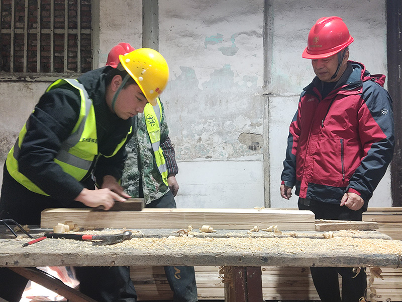 活動(dòng)上,蘇州市香山幫傳統(tǒng)建筑營(yíng)造技藝代表性傳承人孫小青大師為黨員和青年們?cè)敿?xì)講解了香山幫古建筑施工的木工工藝、油漆工藝、瓦工庭院鋪裝等傳統(tǒng)營(yíng)造技藝,并現(xiàn)場(chǎng)指導(dǎo)了學(xué)習(xí)各工種的香山人才計(jì)劃學(xué)徒們,以實(shí)操的形式現(xiàn)場(chǎng)傳授非遺傳承技藝。孫小青大師在授課中對(duì)學(xué)徒說道:“只有練好基本功,你們才是一名合格的香山幫非遺技藝傳承人”。學(xué)徒們現(xiàn)場(chǎng)表示,將扎實(shí)練好基本功,夯實(shí)自身技藝。孫小青大師在項(xiàng)目現(xiàn)場(chǎng)還向市場(chǎng)部員工開展了古建工程造價(jià)授課,他提到在進(jìn)行造價(jià)計(jì)算時(shí)應(yīng)結(jié)合現(xiàn)場(chǎng)情況,充分了解古建施工工藝,才能更準(zhǔn)確進(jìn)行報(bào)價(jià),做出一份好的標(biāo)書。