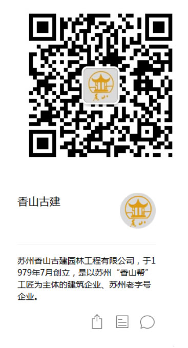 此外,公司微信公眾號(hào)【香山古建】在5月18日正式啟用,歡迎廣大新老客戶、合作伙伴以及對(duì)香山古建感興趣的朋友們關(guān)注!