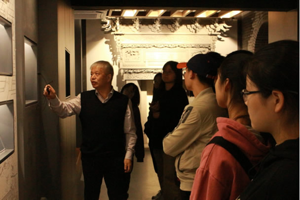 在香山幫營(yíng)造技藝展示館,公司總經(jīng)理、非遺傳承人孫小青大師向?qū)W生們講述了香山幫的歷史傳承和發(fā)展歷程,以及香山幫中木作、水作、石作、油漆作、彩畫(huà)作、掇山作等工種的具體內(nèi)容和使用工具,并組織師生共同觀看了香雪海梅花亭的建造教學(xué)視頻。