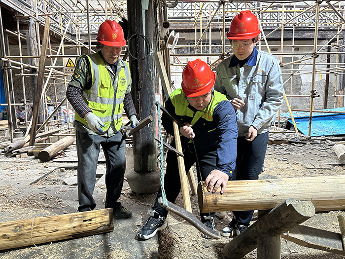 曹滄洲故居項(xiàng)目作為公司今年蘇州古城保護(hù)重點(diǎn)項(xiàng)目,項(xiàng)目部在有序推進(jìn)復(fù)工復(fù)產(chǎn)的同時,亦積極配合公司開展香山人才計(jì)劃學(xué)徒實(shí)操訓(xùn)練,讓香山學(xué)徒在重點(diǎn)工程施工中學(xué)習(xí)運(yùn)用香山幫傳統(tǒng)建筑營造技藝,以期實(shí)現(xiàn)技能提升與人才培養(yǎng)的雙重目標(biāo)。
