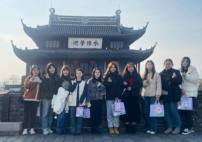 手作活動結束后,大家又來到了位于蘇州古城西南隅的盤門景區(qū)參觀。站在古城樓上,遠眺吳門橋下的古運河蜿蜒南去,依舊可以體驗到范成大詩中“人語嘲喧晚吹涼,萬窗燈火轉河塘”的所描繪的生動場景,感受蘇州古城獨特的歷史文化內涵。